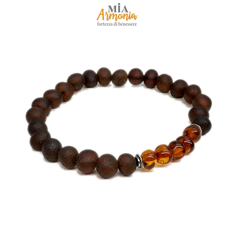 Bracciale elastico Spiritual in ambra con cinque inserti cognac lucido