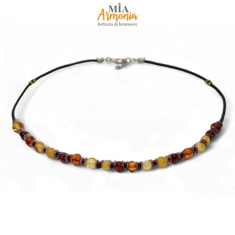 Collana in caucciù ed ambra